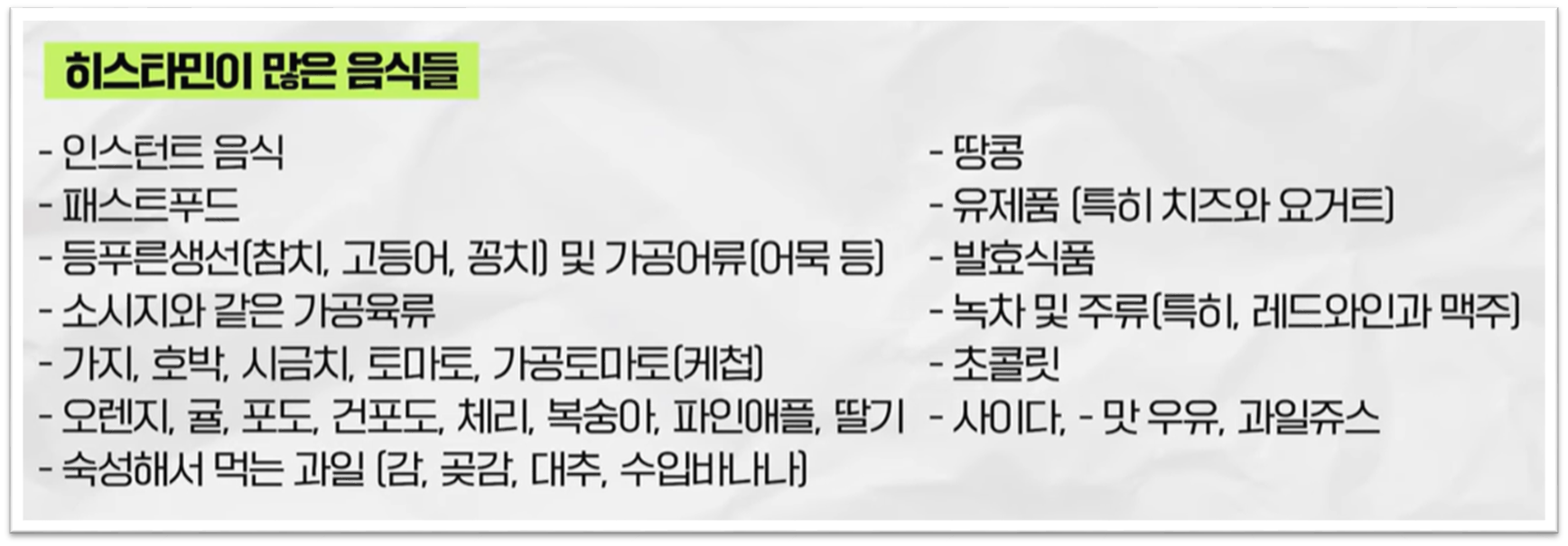또한 일부 연구에서는 히스타민 수치가 높아지면 히알루론산 분해가 촉질될 수 있다는 가능성이 제기되고 있어요 히스타민은 알레르기 반응뿐 아니라 특정 음식을 통해서도 체내 수치가 높아질 수 있습니다